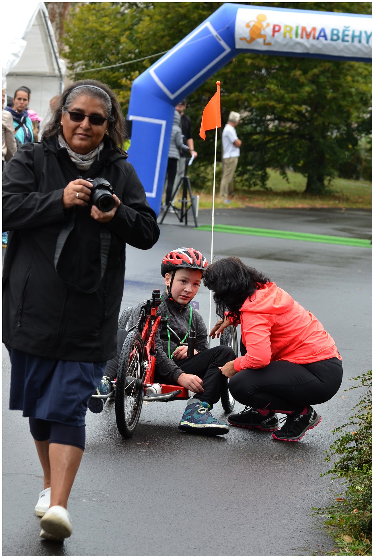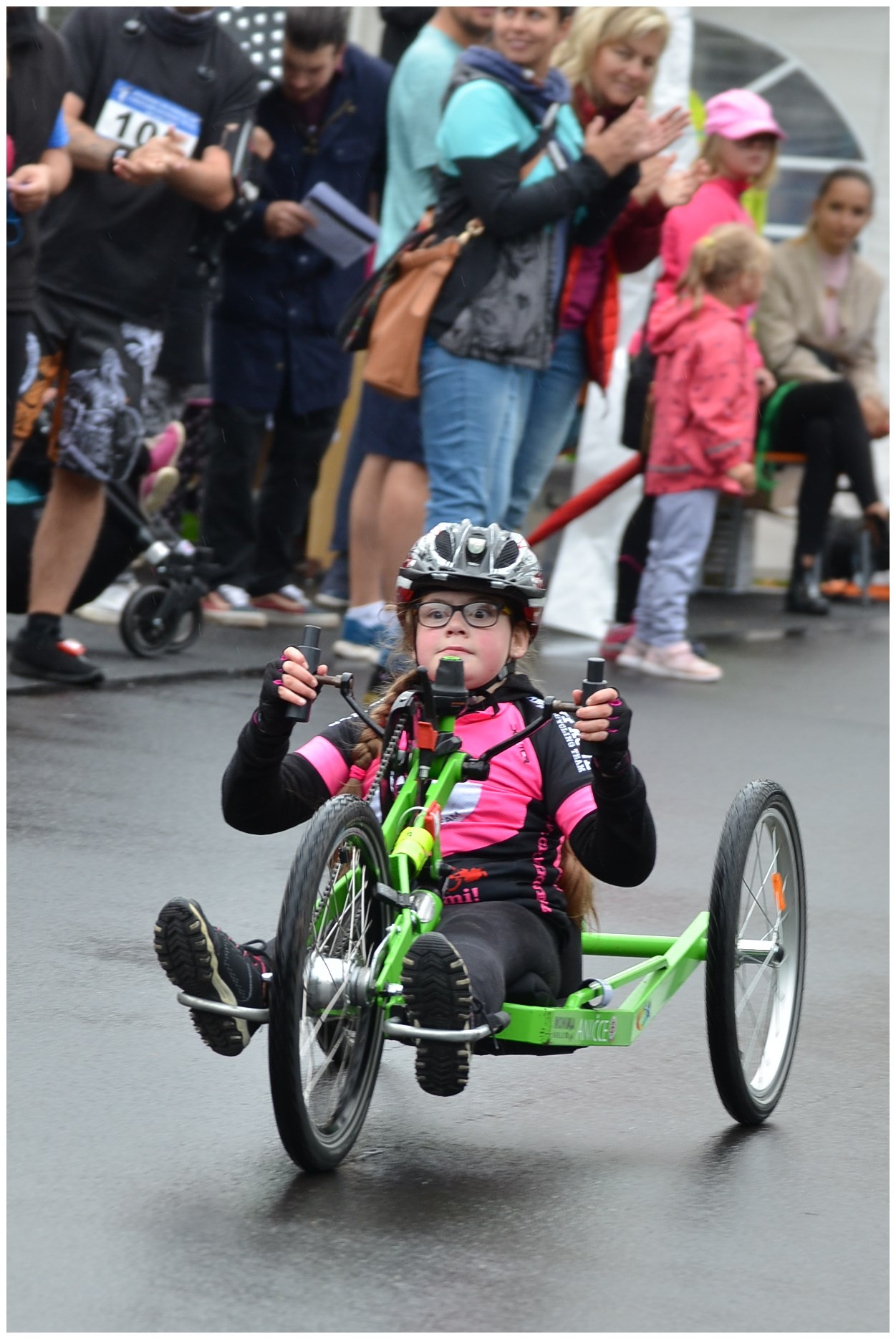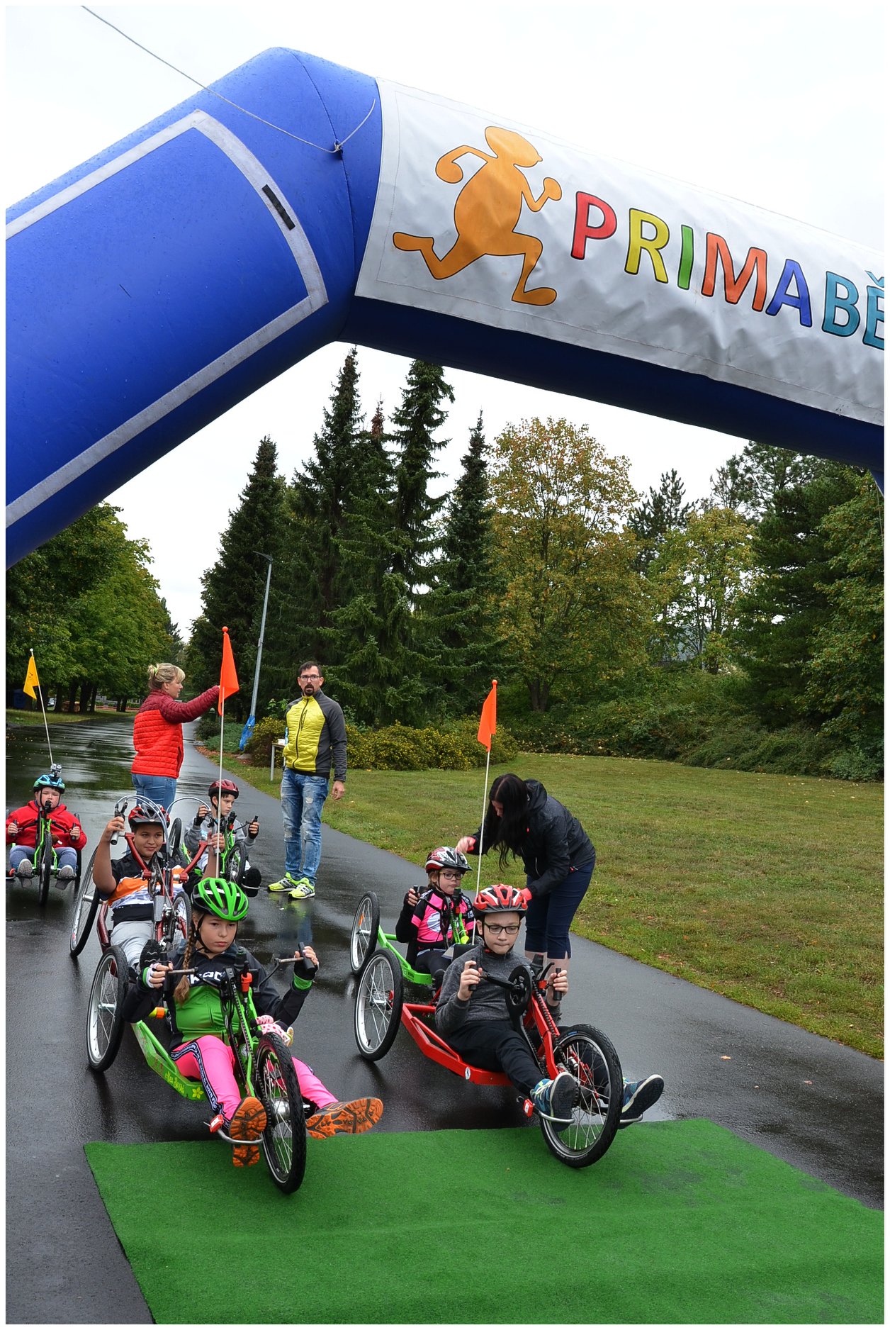 Pokud jste nikdy nevyzkoušeli handbike, věřte, že je to pořádná dřina. Ale pokud máte paralympijské ambice, musíte zvládnout i pět koleček kolem parku, celkem 6,5 km. Představte si, že jedenáctiletá Alex Borská to zvládla za 32:21,8, těsně, ve finiši, porazila Adama Kuthana, který ze začátku závodu vedl. Třetí byl Bohumil Bretschneider, dále Michal Tereska, Anna Kateřina Hrdinová a Lukáš Kulhánek. Závod se jel naplno, na mokré trase došlo v zápalu boje i k překlopení. Handbiky představil v Ústí Paracycling team Černí koně, jeden z handbiků, krásný modrý, pak bezplatně zapůjčil ředitel organizace Tomáš Pouch do trvalého užívání Speciální ZŠ Pod Parkem. Handbike převzala ředitelka školy Martina Brhelová, budou na něm trénovat všichni, především děti s hendikepem dolních končetin.