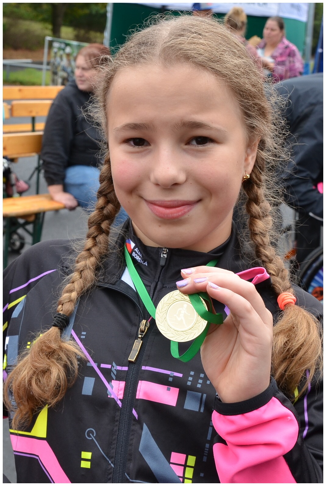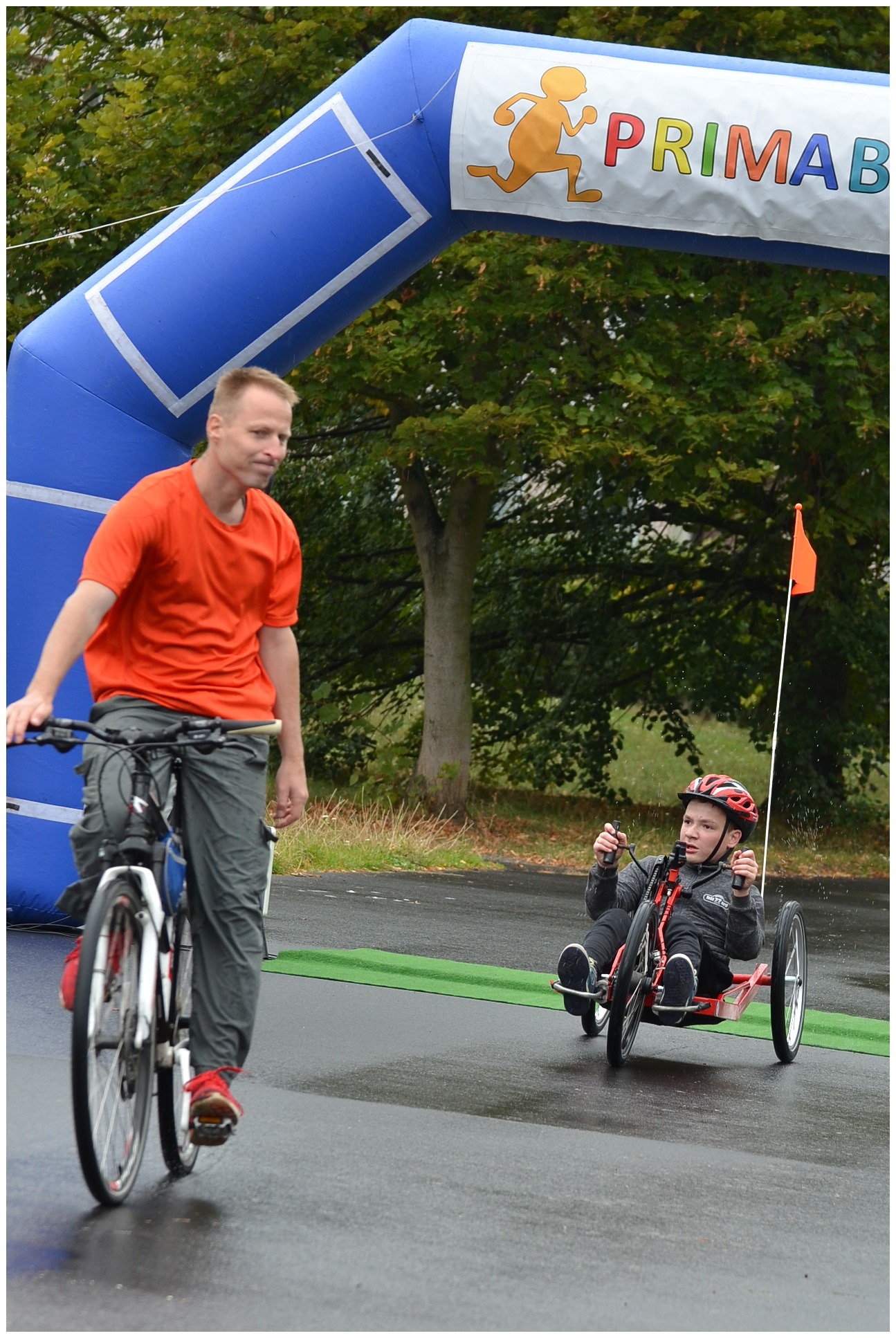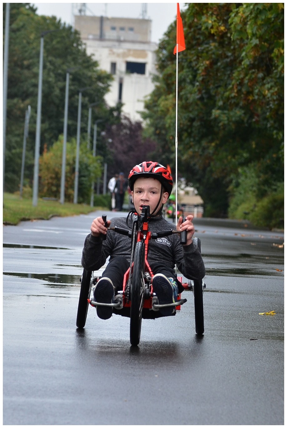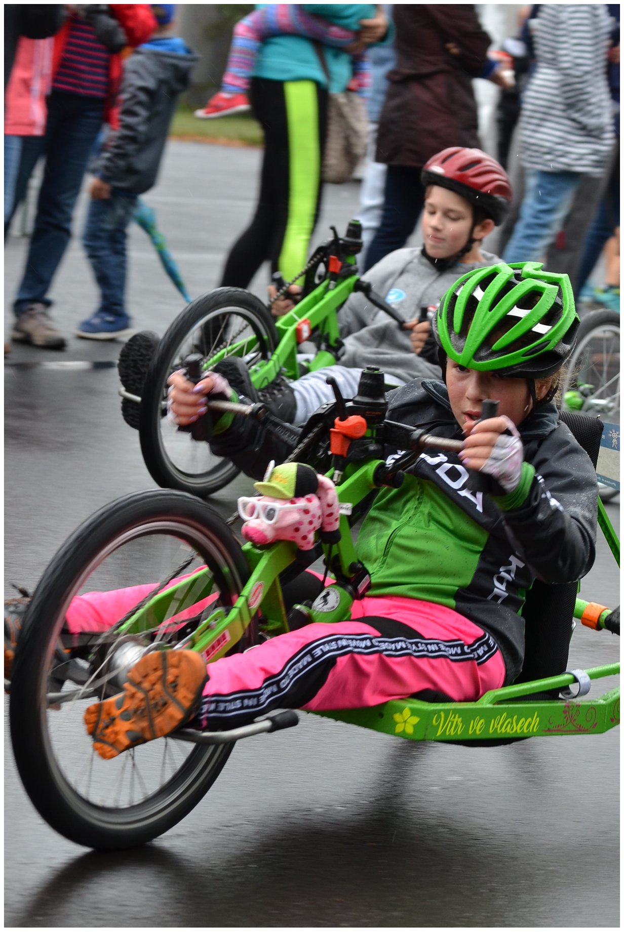 Pokud jste nikdy nevyzkoušeli handbike, věřte, že je to pořádná dřina. Ale pokud máte paralympijské ambice, musíte zvládnout i pět koleček kolem parku, celkem 6,5 km. Představte si, že jedenáctiletá Alex Borská to zvládla za 32:21,8, těsně, ve finiši, porazila Adama Kuthana, který ze začátku závodu vedl. Třetí byl Bohumil Bretschneider, dále Michal Tereska, Anna Kateřina Hrdinová a Lukáš Kulhánek. Závod se jel naplno, na mokré trase došlo v zápalu boje i k překlopení. Handbiky představil v Ústí Paracycling team Černí koně, jeden z handbiků, krásný modrý, pak bezplatně zapůjčil ředitel organizace Tomáš Pouch do trvalého užívání Speciální ZŠ Pod Parkem. Handbike převzala ředitelka školy Martina Brhelová, budou na něm trénovat všichni, především děti s hendikepem dolních končetin.
